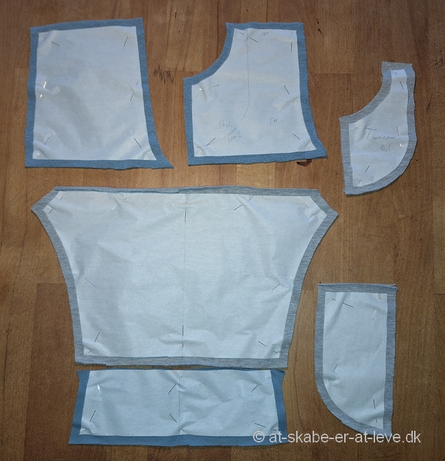 Første trin var at få lavet et mønster. Jeg havde ikke et børnemønster til overdele, som passede hendes størrelse, så en mindre størrelse blev klippet op og forøget. En prøvemodel blev syet af en gardinrest og derefter foretaget relevante tilretninger. Så var det tid at klippe den endelige overdel.